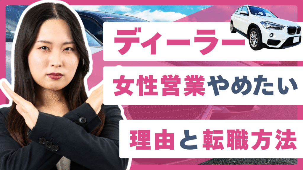 女性ディーラー営業が辞めたい理由を徹底解説。ノルマや人間関係、ライフスタイルとの不一致から転職方法やおすすめ業界まで、キャリアチェンジの具体策を紹介します。 -